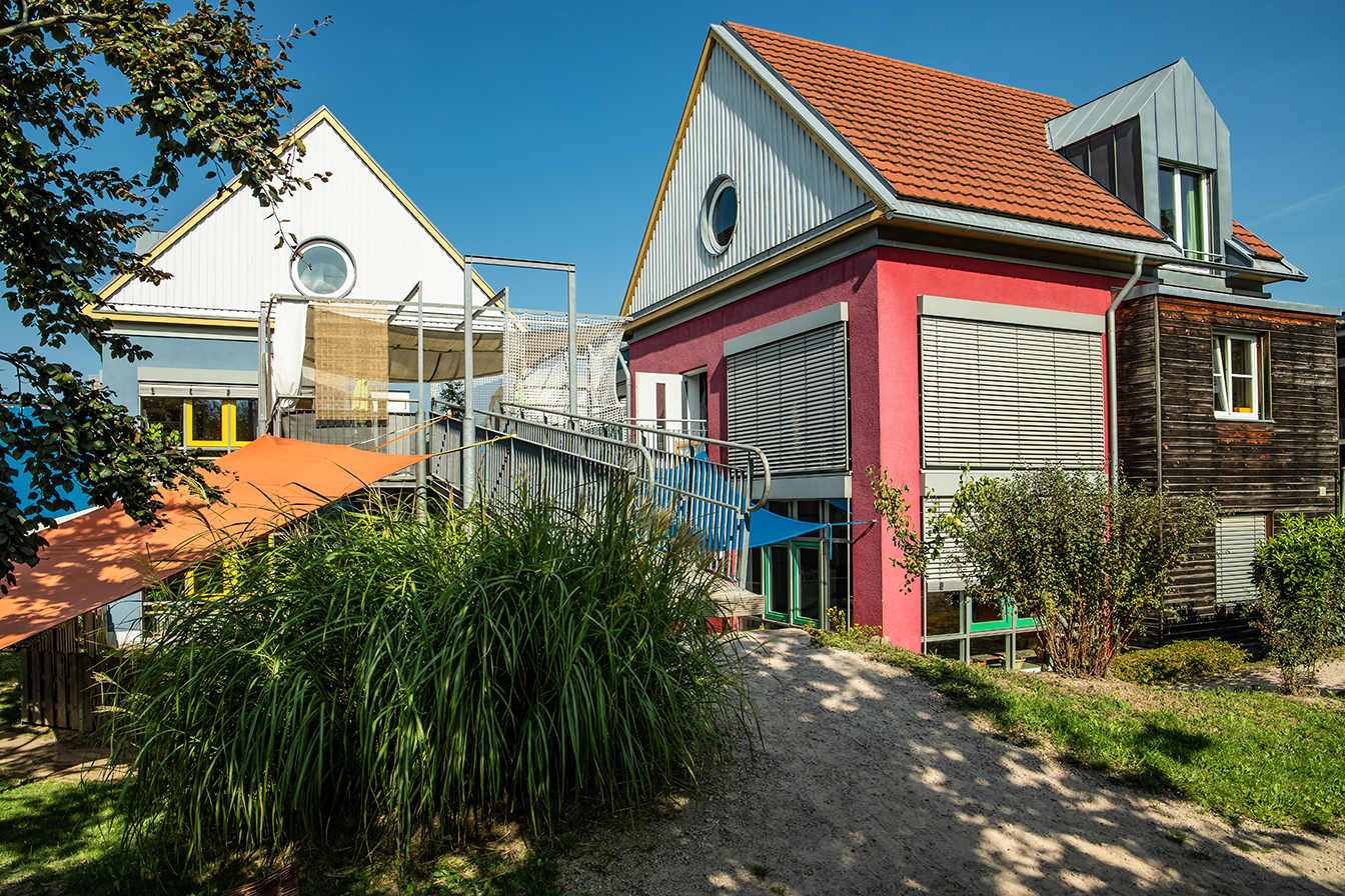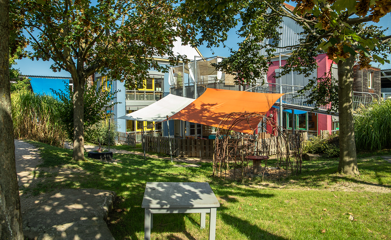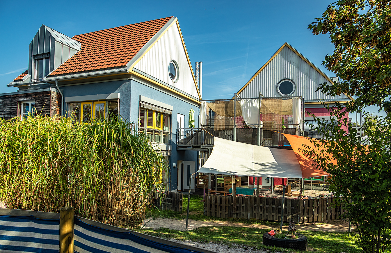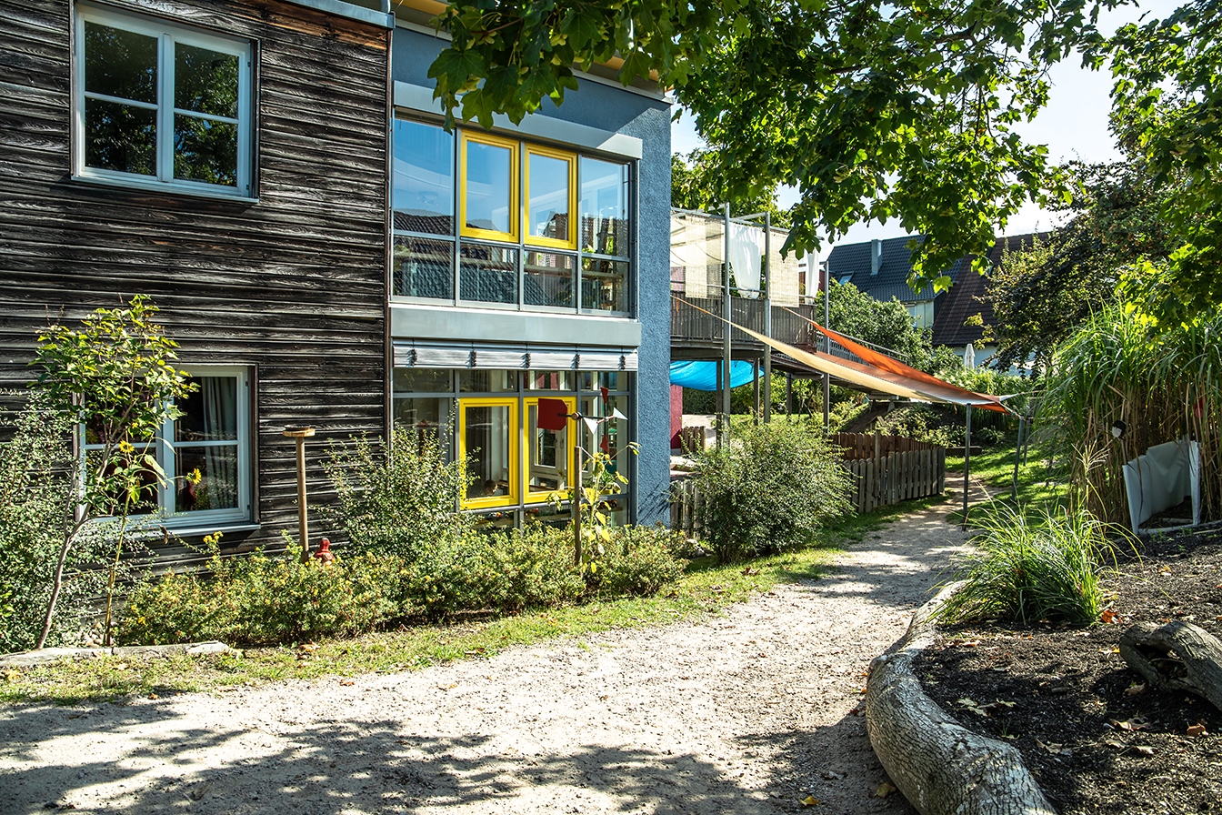 - abwechslungsreiches Außengelände mit Sandkästen, Nutzgarten, Wasserlauf, Kletterturm...