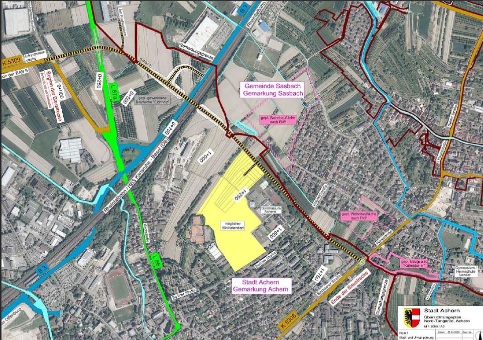 Schaffung der planungsrechtlichen Voraussetzungen zum Bau einer Verbindungsstraße zwischen den Kreisstraßen 5309 (Infrastrukturstraße) und der Sasbacher Straße (Achern) / Hauptstraße (Sasbach) (K5308)